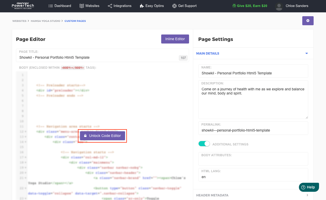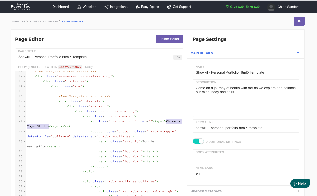 Allows you to edit the components and elements of an uploaded HTML template in real time right on top of the template. You can edit and customize titles and subtitles, the menu labels & links, body copy, and images instantly with a rich text toolbar.