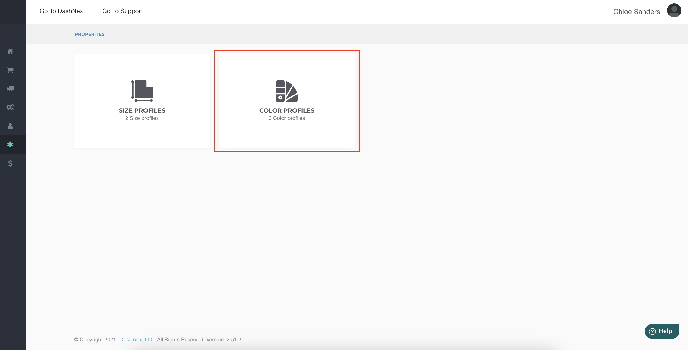 Users can configure color profiles inside the main account level > Properties section. This mirrors the same functionality found in the product details page when adding color sets; users can provide internal name, select a set of colors, and edit color names. Users can then quickly select a pre-set color profile from their product details page to speed up the adding products process.